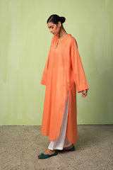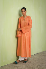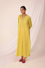 A classic loose-fit long solid kurta featuring a band V-neckline adorned with button details. Finished with a round hem. Can be paired effortlessly with any Gen fits.