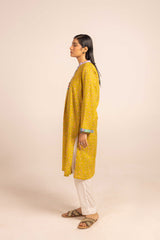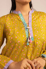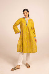 A flared subtle printed kurta featuring a band neckline with a V-slit. Accented with a chunari-printed placket and tassel details, it blends tradition and trend. Can be paired with any generation’s fits for stylish look.