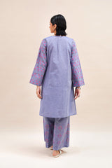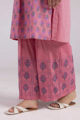 A hand-block printed shirt with a round neckline, paired effortlessly with contrasting printed culottes for a striking and harmonious look.