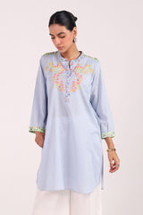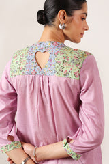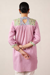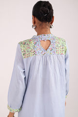 A classic-fit embroidered shirt with a low band neckline and delicate embroidery on the bodice, enhanced with patchwork detailing. Designed with a heart cut-out at the back, it pairs effortlessly with any Generation bottoms.