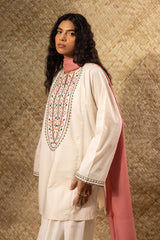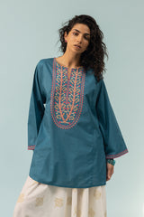 Embroidered paneled kurti in a relaxed silhouette, adorned with multicolour embroidery in an elongated pattern. The wide sleeves are finished with delicate embroidered borders. Style effortlessly with your preferred Generation bottoms.