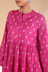 Polka-dot printed tiered peplum top designed with a low band neckline and an overlap placket. Versatile in style, it can be paired with a variety of Generation bottoms.