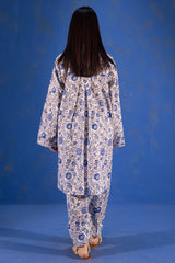 Printed classic-fit shirt with a round neckline and V-slit, finished with a softly rounded hem. Paired with a matching printed pegged shalwar, detailed with stitching along the borders.