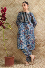 Printed A-line shirt tailored in a classic-fit silhouette, with a square neckline with button detailing along the front placket. Paired with matching straight-fit trousers.