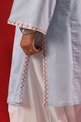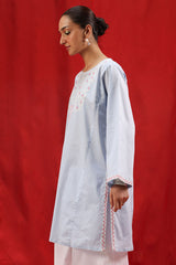 Embroidered classic-fit paneled shirt with a round neckline, adorned with delicate embroidered detailing. Style it with your preferred Generation bottoms for a refined look.