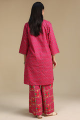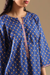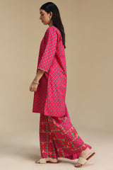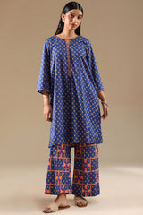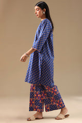 Printed classic-fit shirt with a round neckline and V-slit, paired with coordinated printed culottes.