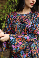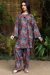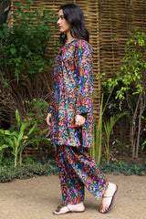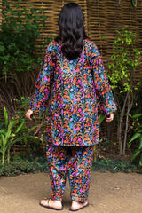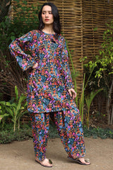 Classic-fit floral-printed kurta with a round neckline and V-slit, adorned with tassel detailing and bead embellishment along the neckline and sleeve hems. Paired with a matching printed classic-fit shalwar.