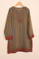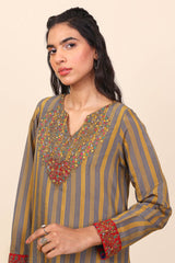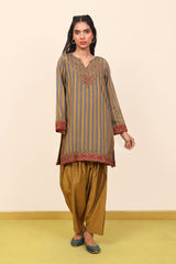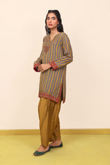 Striped cotton silk kurta with multicolored embroidered kurta with cotton silk plain classic fit shalwar.