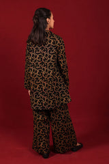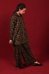 Front open printed collared tunic with buttonm details, paired with loose fit matching pants.