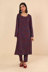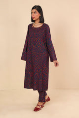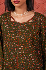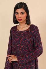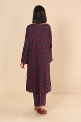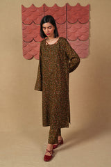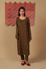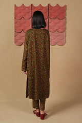 Flora and fauna straight long shirt with square cut neck with hem design paired with matching classic fit trousers.
