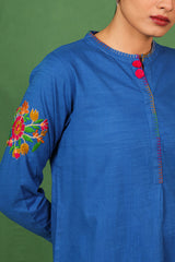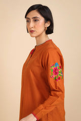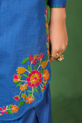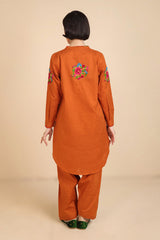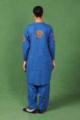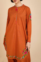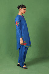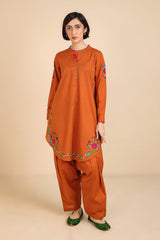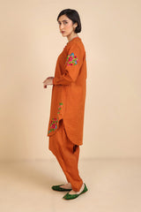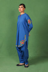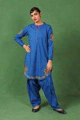 Round hemline, colorfull embroidered kurta with cuff sleeves, paired with classic fit shalwar.