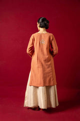 Panelled embroidered kurta with round neckline with V detail, featuring all over embroidery details on crinkle base.