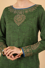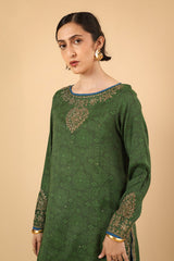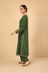 Adorned with marorri and sequin embroidery and chunri prints, this panelled shirt with boat neckline is a perfect fit for the upcoming formal season. Paired with a printed culotte pants.