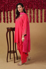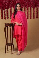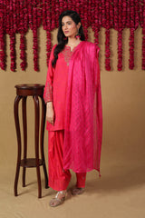 A vibrant, formal dupatta featuring intricate block prints all over, finished with fine edges for a polished and elegant look.