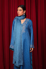 A formal dupatta adorned with intricate all-over block prints, finished with tassel detailing at the corners for a refined touch.