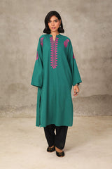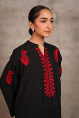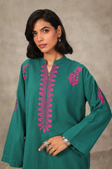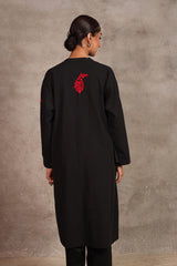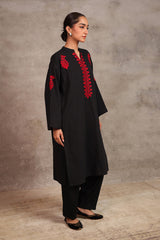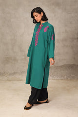 A loose fit kurta with a band neckline , featuring embroidery detailing on bodice.