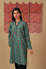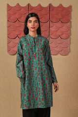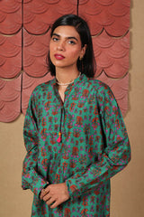 Printed shirt with cuff sleeves and tassel details on neckline.