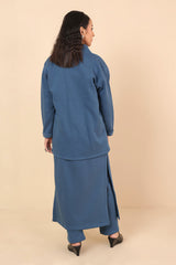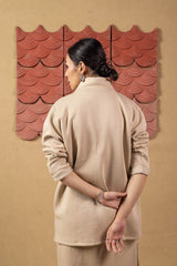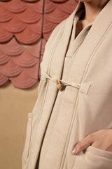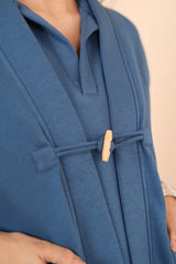 Front open fleece jacket, with toggle buttons for closure. The jacket has side pockets and turn up sleeves.