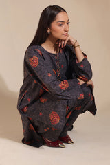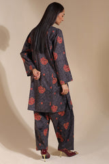 A printed shirt with a round neckline and buttoned front placket, styled with a side pocket for added functionality and ease. Paired with a matching printed classic-fit shalwar for a coordinated look.