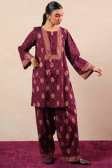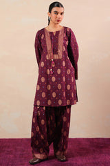 A classic-fit, gold-printed shirt with a round neckline and V-slit, finished with tassel detailing. Paired with matching, printed classic-fit shalwar for a coordinated look.