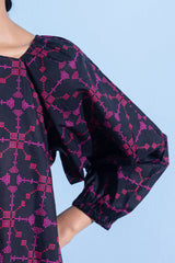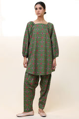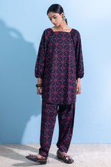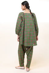 Classic-fit printed shirt with a square neckline and soft puff sleeves, finished with cinched hems. Designed in a chic boxy silhouette with a rounded hem for a refined look. Paired with matching printed pegged shalwar.