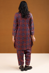 A classic-fit printed shirt with a round neckline and V-slit, adorned with tassel detailing. Paired with a matching printed classic-fit shalwar for a cohesive, effortless look.