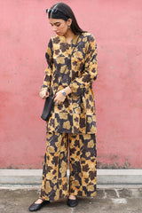 A classic-fit printed shirt with a round neckline and V-slit. Paired with matching printed culottes for a coordinated, effortless look.
