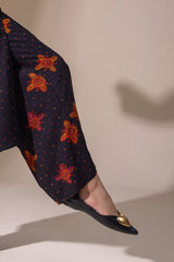 Classic-fit printed shirt with a round neckline and a buttoned front slit, complete with side pockets for added functionality and ease. Paired with coordinated printed culottes.