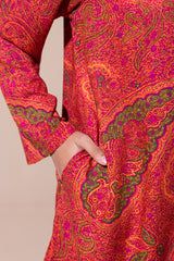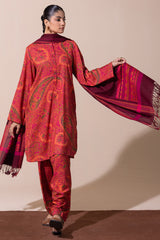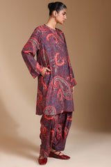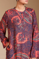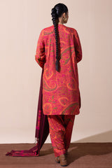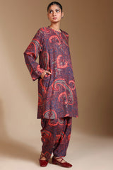 Classic-fit printed shirt with a low band neckline and buttoned front placket, featuring a side pocket and round hem. Paired with matching printed classic-fit shalwar.