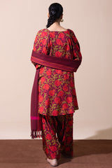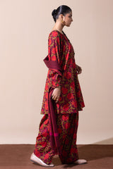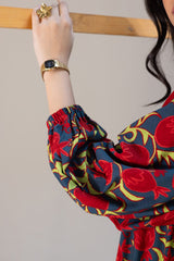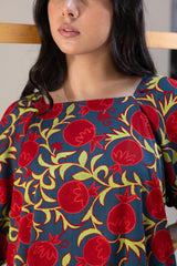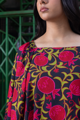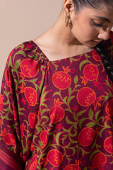 Anar-printed classic fit shirt with a square neckline and cinched sleeves. Finished with a rounded hem and paired with matching printed khula-poucha shalwar for an chic look.