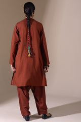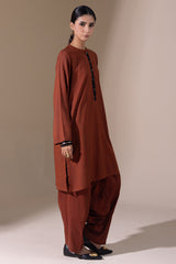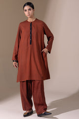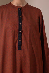 Classic-fit printed shirt with a round neckline and a buttoned front placket. Designed with side pockets for added ease. Paired with a matching printed classic-fit shalwar for a cohesive look.
