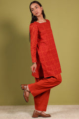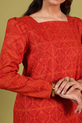 Classic-fit hand block printed shirt with a square neckline and puff sleeves for a classic feminine touch. Paired with a solid classic-fit shalwar for a balanced, elegant look.