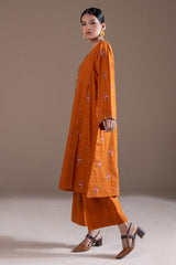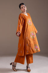 Embroidered angrakha-style kurta adorned with delicate crochet detailing and button accents. Paired with classic culottes for a refined look.