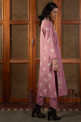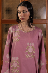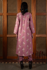 Classic-fit phool embroidered shirt with a round neckline, adorned with delicate stitching detail. Paired with classic straight-fit trousers.