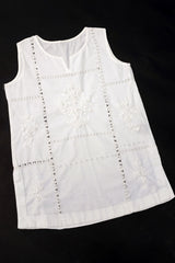 Classic-fit shirt with a round neckline and V-slit, enhanced with delicate paneling and patti work featuring handcrafted 3D knotted florals. Designed with fine Tarkashi detailing along the panels for a textured, artisanal finish.