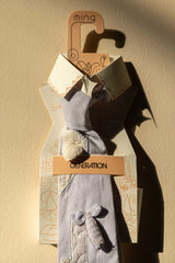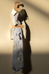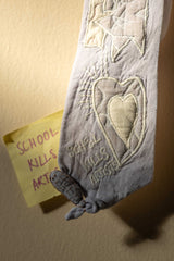 A playful embroidered tie featuring hanging motifs of hearts and fishes, a whimsical accent to pair with any shirt.