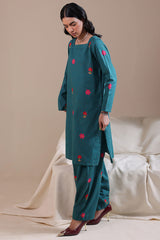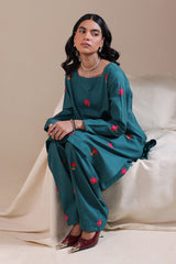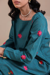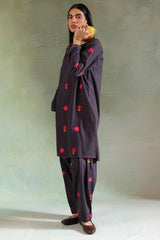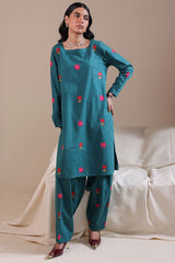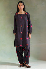 A classic-fit embroidered shirt on a speckled base, designed with a square neckline. Paired with a matching embroidered classic-fit shalwar for an effortlessly composed look.