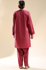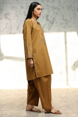 Classic-fit self-embroidered shirt with a V-neckline, featuring refined detailing along the neckline and sleeves. Paired with a classic-fit shalwar.