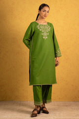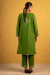 Embroidered classic-fit shirt with a round neckline. Paired with straight-fit trousers, finished with embroidered borders for a refined look.